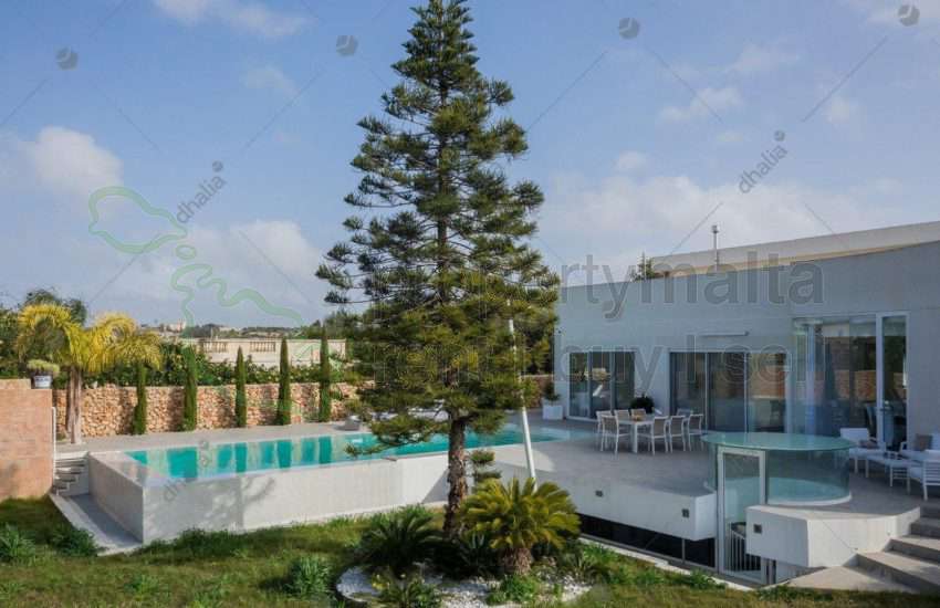 An extraordinary detached bungalow set on a plot of 440 square metres having a built-up area of 200 square metres and 240 square metres of outdoor area in proximity to the seafront. The modern layout comprises an entrance hall leading to a fully fitted kitchen and spacious sitting/dining. The sleeping quarters comprise three bedrooms and a study (with the master bedroom having an ensuite bathroom and a walk-in wardrobe). A lift off the hall connects you to the basement level where one finds a two-car garage and a two-car driveway, a soundproof music room/cinema room, storage space, a shower facility and an indoor pool. The outdoor area of the property consists of a vast decking terrace around the open plan another another amazing roof terrace with fantastic sea views. Must be viewed to be fully appreciated.