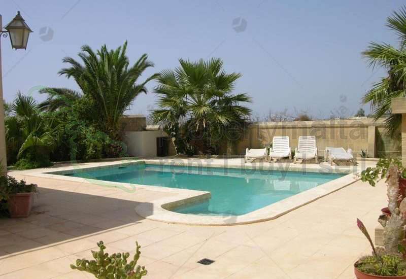 Spacious, seafront three-bedroom air-conditioned Bungalow in Qawra. The property consists of a large open kitchen/dining/living area leading to a front and back garden, a box room, one double bedroom, two single bedrooms, the main ensuite, a family bathroom, and ample parking space on the property.