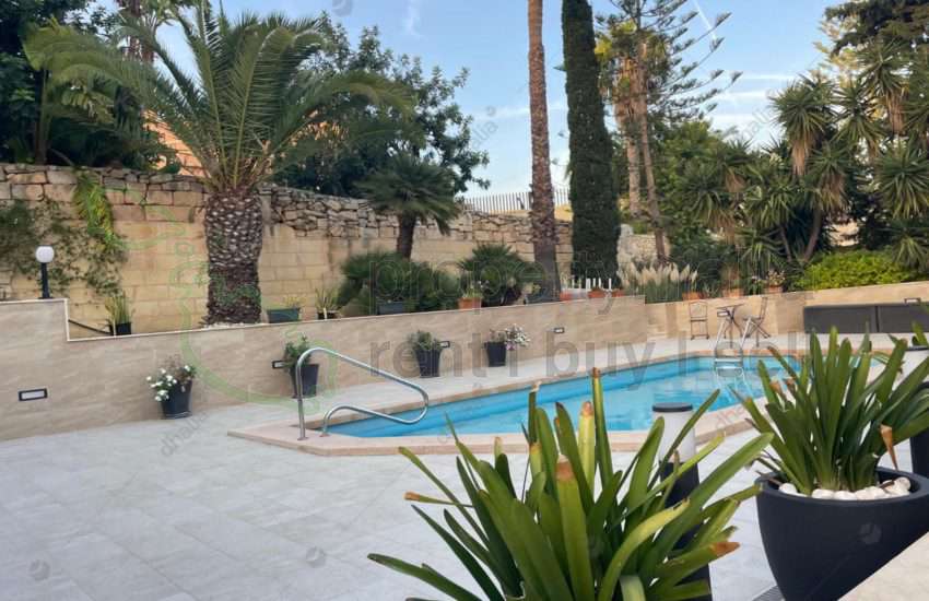 Six-bedroom semi-detached VILLA situated in a cul-de-sac in tranquil residential area enjoying panoramic sea, country and town views. Property comprises a large entrance hall, formal living room, formal dining room, kitchen, dining area, living/bar room, pantry, guest toilet and terrace overlooking pool and views. At second floor level one finds three spacious double bedrooms, main with ensuite shower room, walk-in wardrobe and terraces enjoying unobstructed sea and country views, main bathroom and guest bathroom. At roof level one finds a cozy bedroom or study room. An underlying independent two-bedroom flatlet with combined kitchen/living/dining area and shower room can be found. Four-car garage including utility rooms/toilet. One-car carport. Large surrounding garden, outdoor space and swimming pool. Fully air-conditioned. Flat screen TV`s throughout. Solar panels. Recently refurnished.