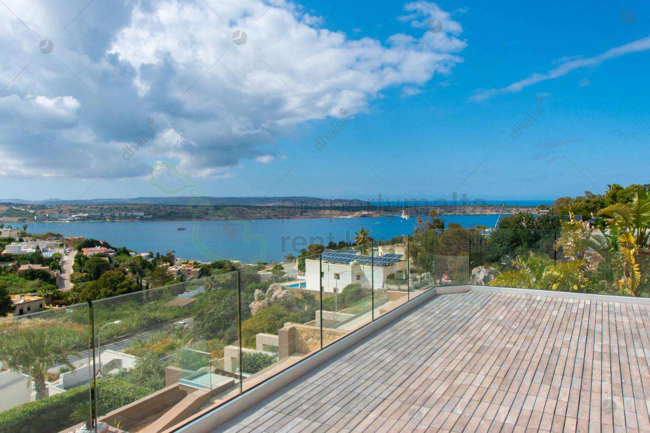 Unique and classy luxurious DETACHED VILLA, with spacious accommodation in Mellieha, in a tranquil private setting surrounded by a landscaped pool and garden area. This magnificent five-bedroom, four-bathroom home has everything to offer you, situated just a few minute`s drives away from the beach, shops, restaurants, and the village core and located in a quiet cul-de-sac in a highly sought-after area enjoying expansive views towards Mellieha Bay, Comino, and Gozo. The 400m2 luxury interior offers an open plan entry foyer, a lounge with contemporary features leading to a BBQ outdoor area, a stylish fully equipped Pedrini kitchen, a rock-cave wine cellar, and another sitting room perfect for relaxing. The master bedroom has a log fireplace, a walk-through walk-in wardrobe, and an ensuite. There`s a junior suite, another two double bedrooms, one with an ensuite bathroom, and another double bedroom with a sofa-bed and study area, and the fifth bedroom enjoys a TV lounge, all enjoying breathtaking sea views. Complementing this luxury property is a one-car LVG, a two-car carport, and additional off-street parking for another six cars.