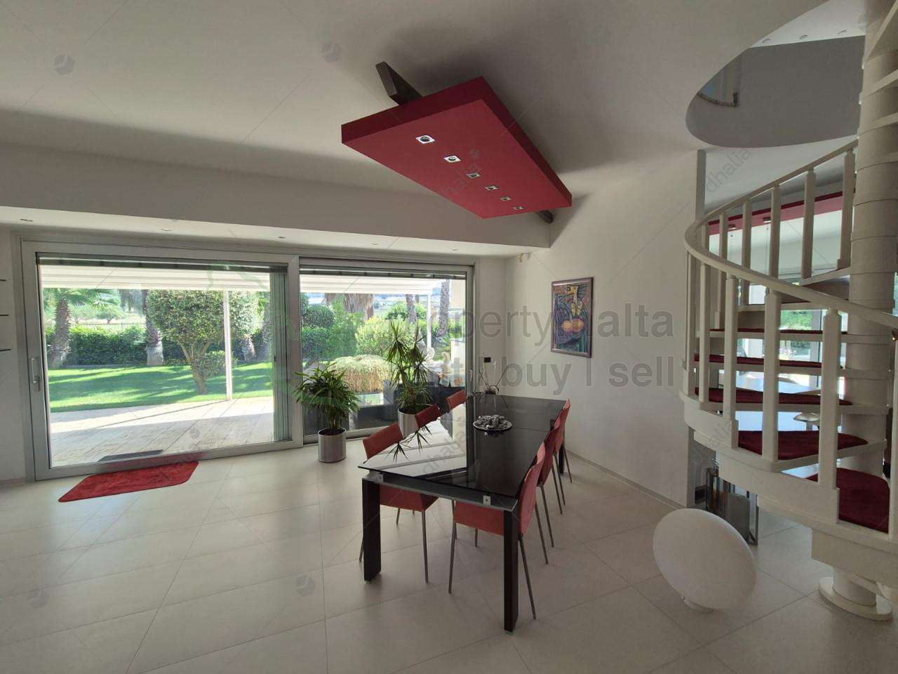 Discover an exquisite villa set on 4,000 square metres of lush landscaped grounds in beautiful Grammichele. This luxurious property offers an expansive open-plan sitting and dining area with a grand fireplace and impressive five-metre glass doors, seamlessly blending indoor and outdoor spaces with views of the enchanting gardens. The state-of-the-art kitchen opens onto a spacious verandah, overlooking a sparkling pool and garden – perfect for al fresco dining and entertaining. The ground floor also features a serene bedroom and main bathroom, with a separate corridor leading to a second kitchen and BBQ area for outdoor gatherings. Upstairs, enjoy four spacious bedrooms and three stylish bathrooms, with the master suite boasting a private terrace and Jacuzzi. This Sicilian villa is the epitome of elegance and comfort – your paradise awaits.