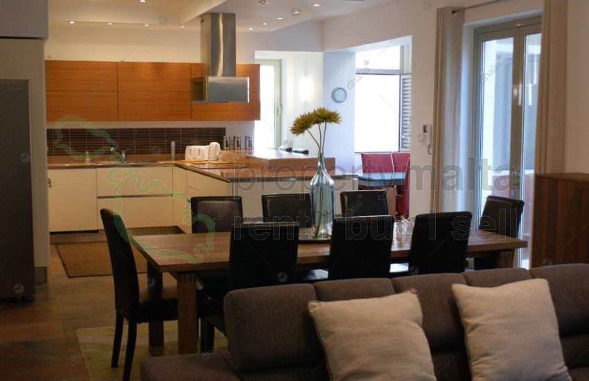 Duplex apartment with lovely sea views set in St.Julians close to all amenities. The apartment consists of kitchen/dining/living room, two double bedrooms with shower ensuite, study room and two front balconies. Fully equipped with air conditioning, internet and basic tv.