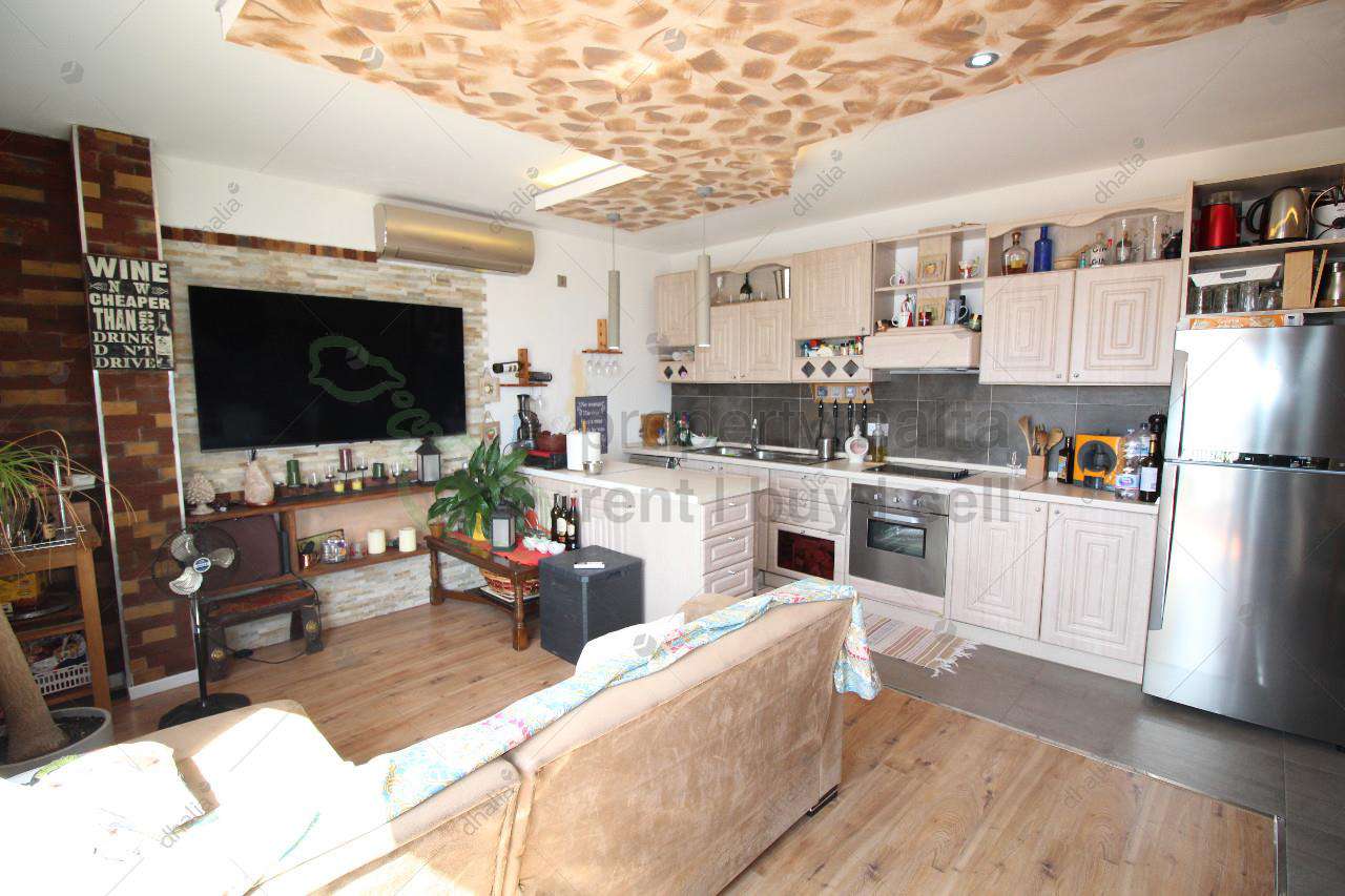 Duplex penthouse just came up for sale. Situated just a few metres from the sea and set on the fifth floor. The layout offers a corridor which leads to two bedrooms, bathroom and an ensuite, large storage/washroom. A spacious open-plan kitchen/living/dining area overlooks the terrace with distant country and sea views. The upper floor(sixth) is currently an unfinished project which still has to be completed. The property is suitable for first time buyers or as a rental investment. Airspace comes along with the property.