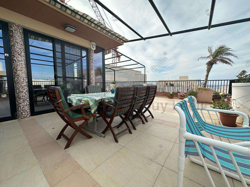 One minute walk from the seafront comes this luxuriously furnished duplex and corner penthouse with ample external area for entertainment. Further complementing the property is it`s airspace which can be developed into another penthouse with the ability of the current two floors to be split into four rental units, making it five in all. The current layout is in the form of a very large open plan with a very spacious terrace on the top floor level and four bedrooms, four bathrooms and an entertainment area on the lower level. One car space is included in the price. The property is served with a lift and is freehold.