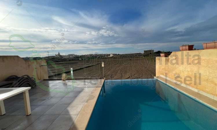 Newly finished and furnished farmhouse located in Gharb in a tranquil area. This property consists of a combined kitchen/living/dining room, four bedrooms, four bathrooms and a terrace. House also have a private swimming pool with decking/BBQ area enjoying open country views , a roof terrace, underlying garage and fully air-conditioned.