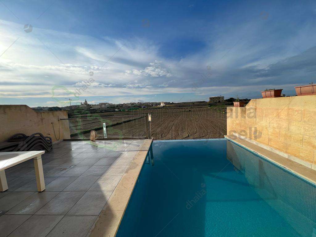 Newly finished and furnished farmhouse located in Gharb in a tranquil area. This property consists of a combined kitchen/living/dining room, four bedrooms, four bathrooms and a terrace. House also have a private swimming pool with decking/BBQ area enjoying open country views , a roof terrace, underlying garage and fully air-conditioned.