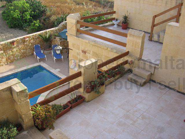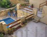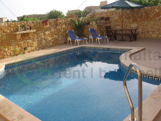 200 year old farmhouse which has been expertly converted into a three bedroom vacation home. It is situated in the little sleepy village of Ghasri with just a little over three hundred inhabitants, located in the western part of the island, with large rural areas reaching up all the way to Ghasri Valley. One can go for lovely walks to this gorgeous valley, which is located just west of Marsalforn Bay. Ghasri is just five minutes away from the main town of Victoria. The main entrance of this lovely farmhouse is a hallway, and leads directly to the courtyard, where you`ll find the lovely private pool (24Ft by 14ft) and BBQ area. The living room complete with TV, the fully equipped kitchen, a separate dining room and a bathroom are also located on the ground floor. A few steps takes you to the first bedroom that consists of five single beds with bathroom en-suite. Two lovely terraces with country views and wash room complete with washing machine are also found in this section of the farmhouse. On the first floor you`ll find the other two double bedrooms, with en-suite` bathrooms. Access to the first floor is from an external or internal staircase. This farmhouse is furnished mostly in authentic antiques and can accommodate up to 10 persons.
