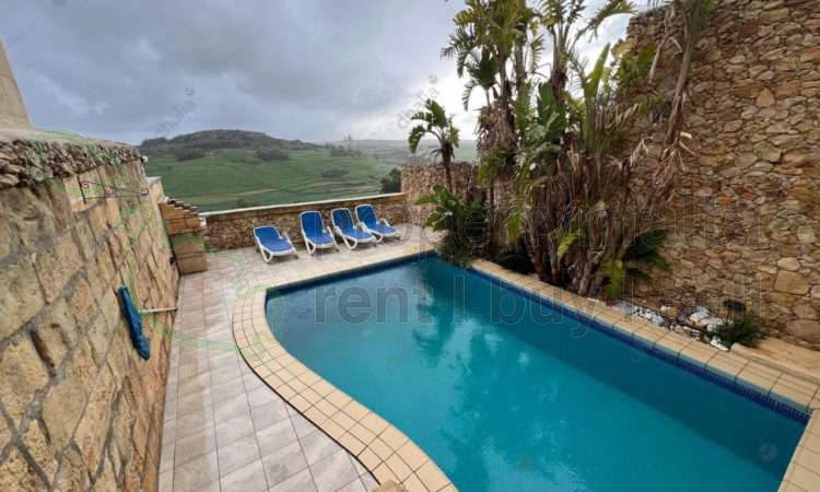 A stunning three-bedroom, three-bathroom farmhouse featuring a spacious and inviting pool area with breathtaking country views. This charming property blends traditional architecture with modern comforts, offering a cozy living space, a fully equipped kitchen, and en-suite bathrooms. The outdoor area is perfect for relaxation or entertaining, with ample space, a sun deck, and uninterrupted views of the surrounding countryside. Peaceful yet conveniently located near the village center, this farmhouse promises a perfect retreat.