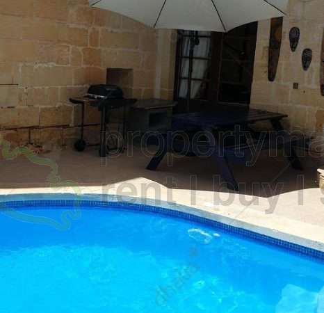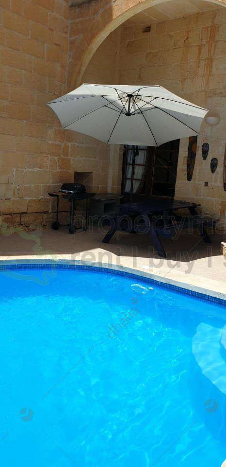 This farmhouse is a traditional 300-year olf farmhouse in a quiet area in Xaghra close to the Gigantija temples consisting of three bedrooms all having ensuites, another private bathroom, a combined kitchen/living/dining leading to the pool area. All bedrooms are air-conditioned.