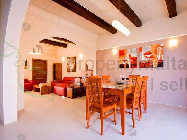 A stunning farmhouse situated in the beautiful village of Xaghra. The property consists of a fully equipped kitchen and dining room, a separate living area, three spacious bedrooms, four bathrooms, and a private swimming pool with a well-sized decking area and terraces. This house is also equipped with air-conditioned.