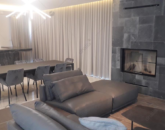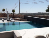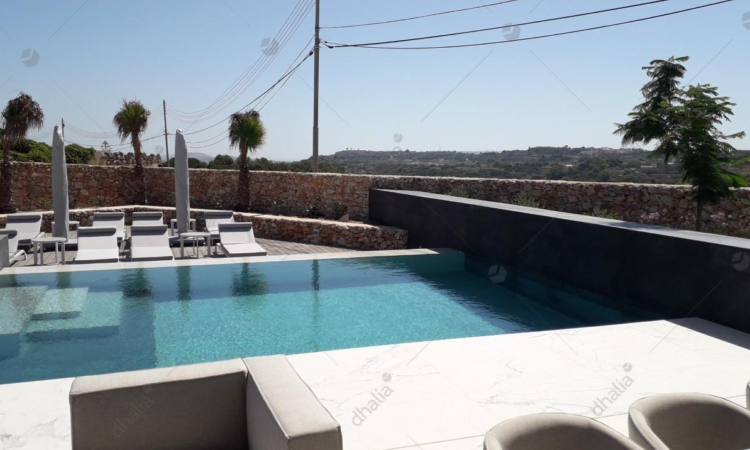 New, designer-styled, four-bedroom, five-bathroom country-house situated on 2.5 tumoli of land, located in this quiet upmarket residential area, surrounded by gardens, hills, and the countryside. Upon entrance, one will find the main living area of the house, with a brand new white fully-equipped kitchen and black-marble bar on your left and the main living/tv area straight ahead. The living/TV area is fully furnished including WiFi, a 60-inch television, a fireplace, and huge sliding windows allowing lots of natural light into the room and the feeling of being outside while actually being indoors. Leading out from this main room are two independent fully-fitted bedrooms each with a double bed, a third bedroom also with a double bed, and with an en-suite bathroom another bathroom with a shower also serves as the bathroom of the pool area as it has a second door leading out.
