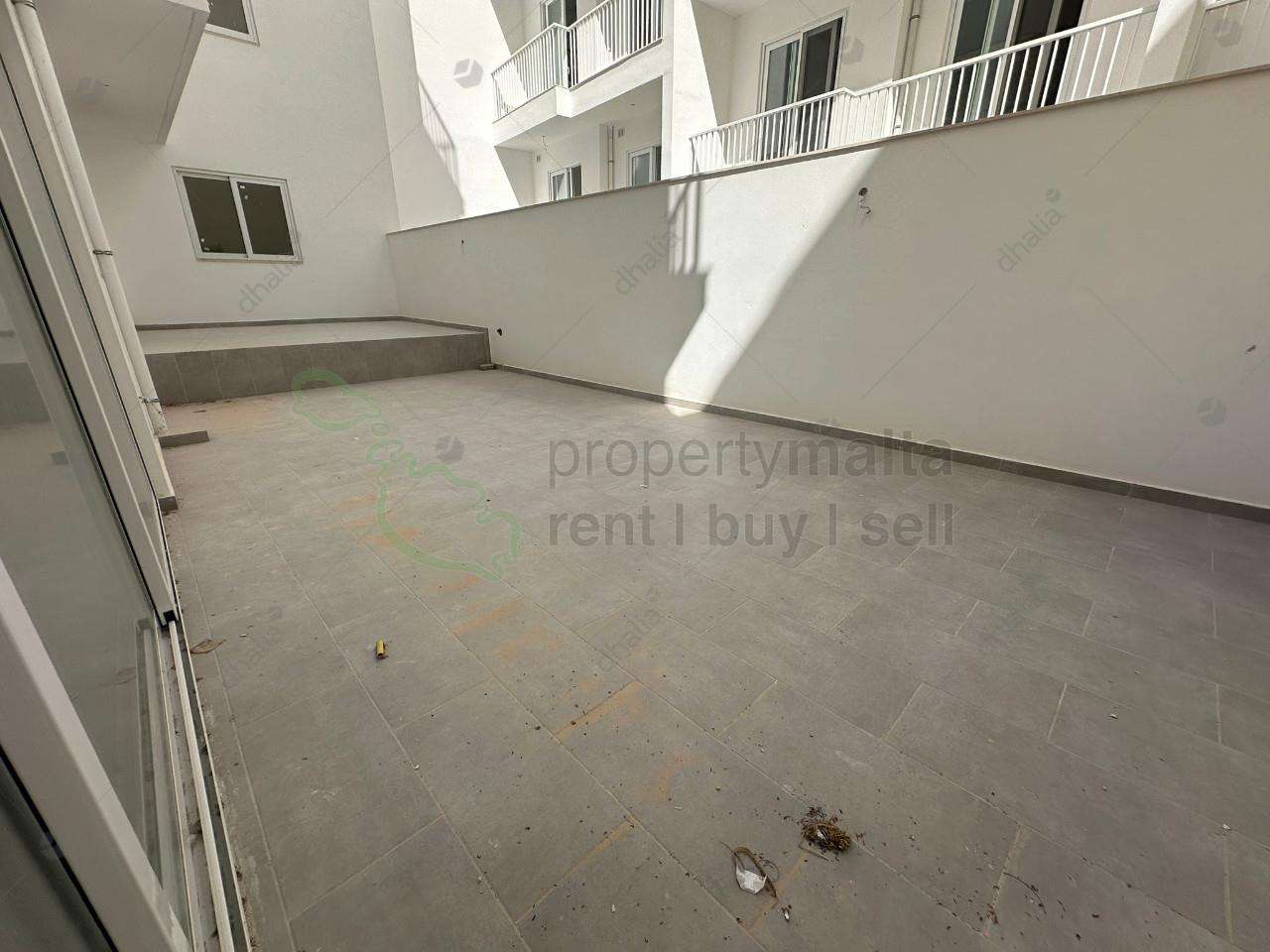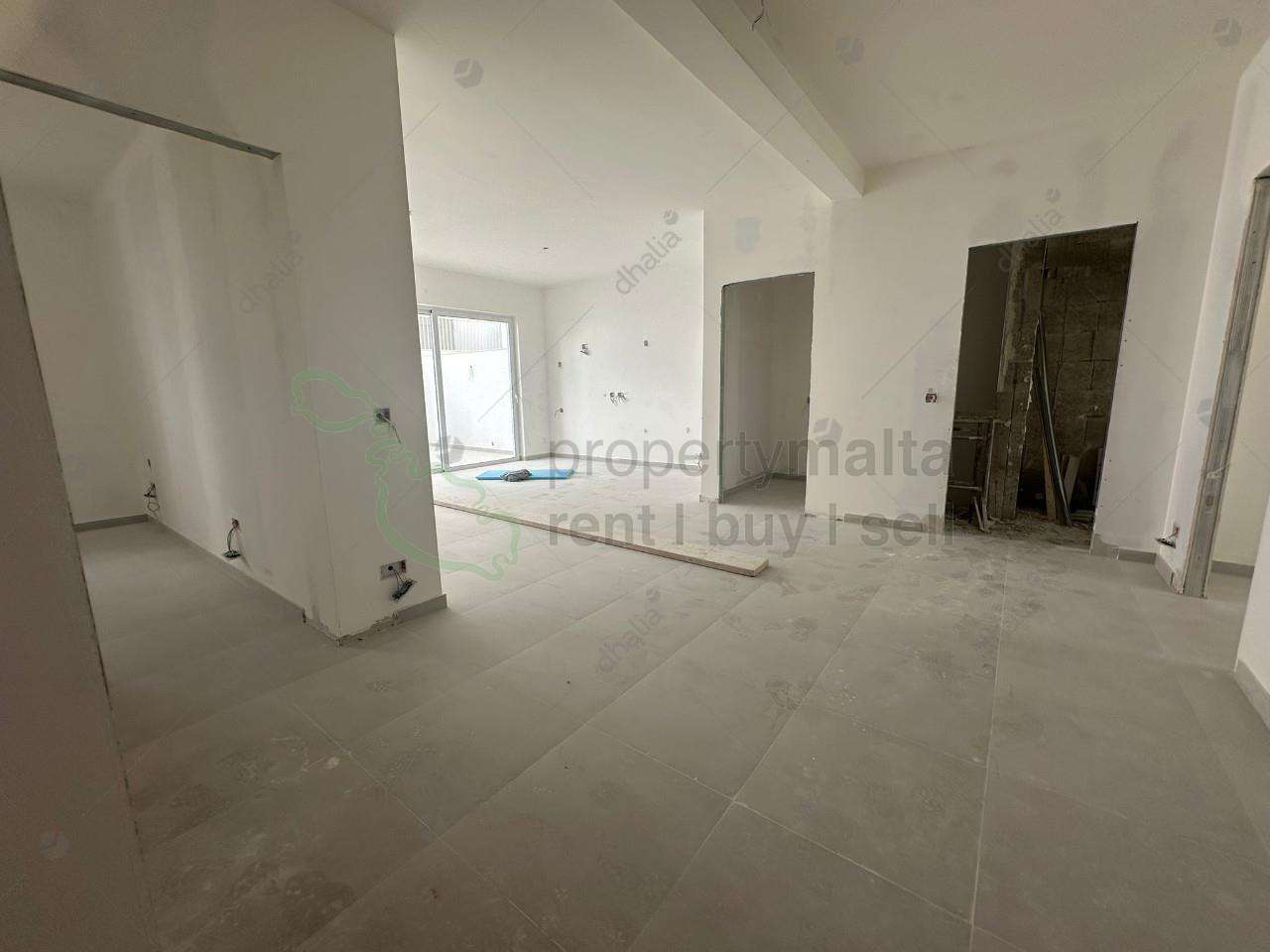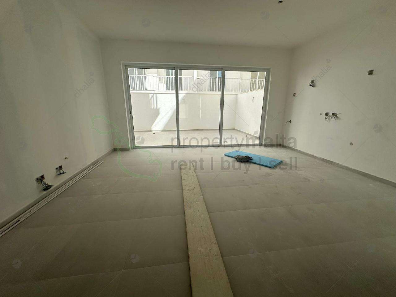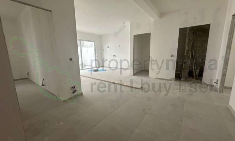 A ready-built, large ground-floor apartment with a large outdoor area of 56 square metres. This beautiful apartment has a squarish layout of 123 square metres and consists of an open plan kitchen/living/dining area leading to a large terrace and a garden, two bedrooms both with a walk-in wardrobe and en-suite facilities, a guest bathroom, and a boxroom.