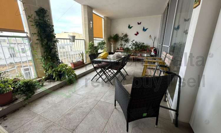 A large three-bedroom apartment forming part of a block of only 4 units. It measures 196 square metres (166 sqm internal and 30 sqm external), including a garage of 47 square metres, just under the same block. The layout comprises a large open plan sitting and dining area measuring 60 square metres, leading to a front terrace, a large master bedroom with ensuite and a walk-in wardrobe, another two double bedrooms (one of them is presently used as a separate kitchen), a main bathroom, a laundryroom with a small balcony and a large back terrace. It is freehold.