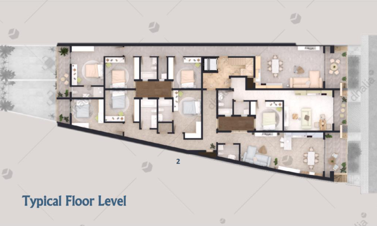 A second-floor apartment located in a lovely residential area having a spacious accommodation in the form of an entrance hall, open-plan kitchen/living/dining area, three bedrooms, two bathrooms, laundry room, a large front terrace and a back balcony. Optional garages available. Completion date December 2026.