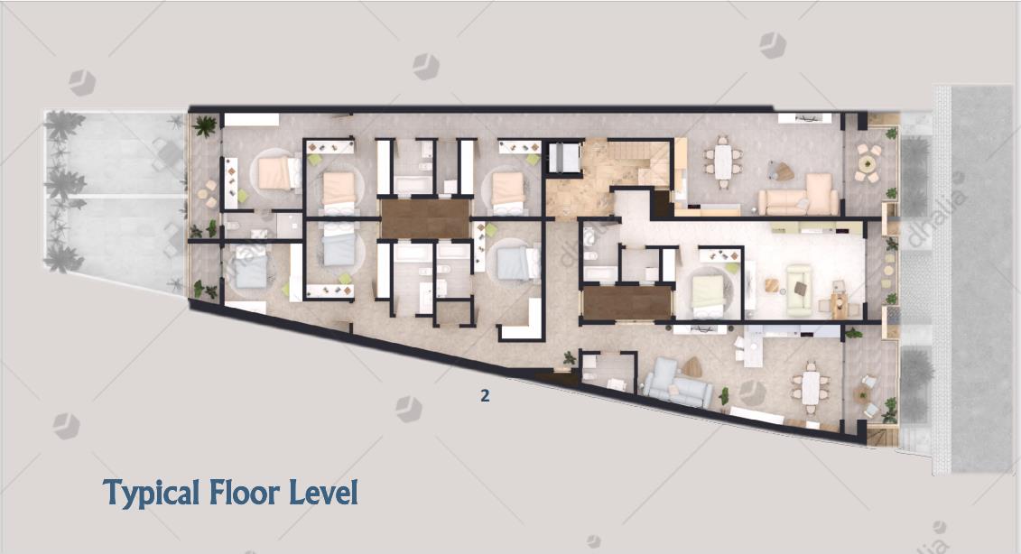 A second-floor apartment located in a lovely residential area having a spacious accommodation in the form of an entrance hall, open-plan kitchen/living/dining area, three bedrooms, two bathrooms, laundry room, a large front terrace and a back balcony. Optional garages available. Completion date December 2026.
