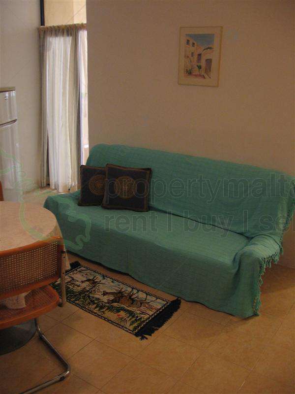 Fully furnished one-bedroom apartment in Bugibba. The property consists of a kitchen/living/dining, shower room, and a back yard.