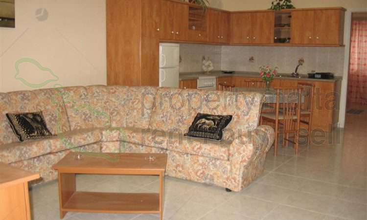 A well-furnished, two-bedroom apartment airconditioned apartment situated in Bugibba. The property consists of a combined kitchen/living/dining, bathroom, and backyard.