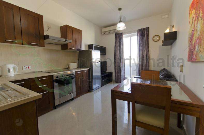 A modern, fully furnished one bedroom apartment available for lease in the heart of Bugibba/Qawra, just minutes from the centre and all amenities. This bright and airy home features a fully fitted kitchen, a spacious bathroom, and a comfortable bedroom, all finished to a high standard. The highlight of the property is a large back balcony offering distant sea views, perfect for relaxing or entertaining. This apartment is ideal for a single person or couples seeking a stylish and conveniently located residence.