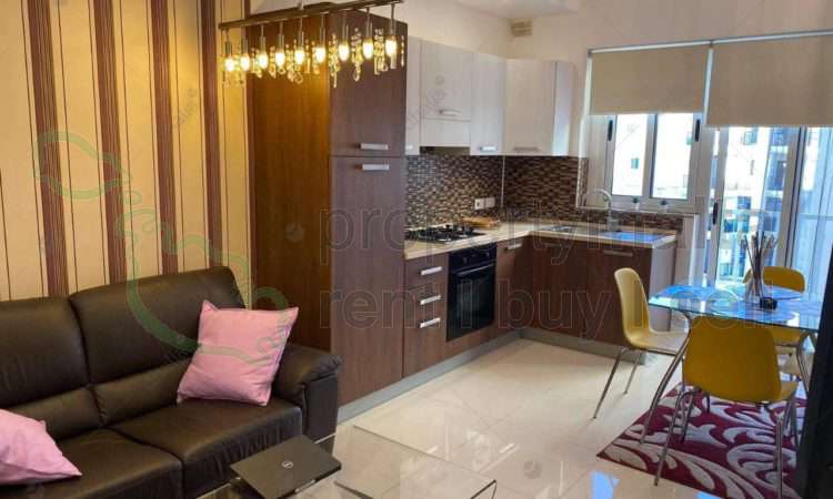 A fully furnished two-bedroom apartment, strategically situated close to all essential daily facilities. in Bugibba now available for rent. The layout comprises an open-plan kitchen, living and dining area leading onto the main bedroom, the main bathroom, a secondary bedroom, and a front terrace. Contact agent for more details.