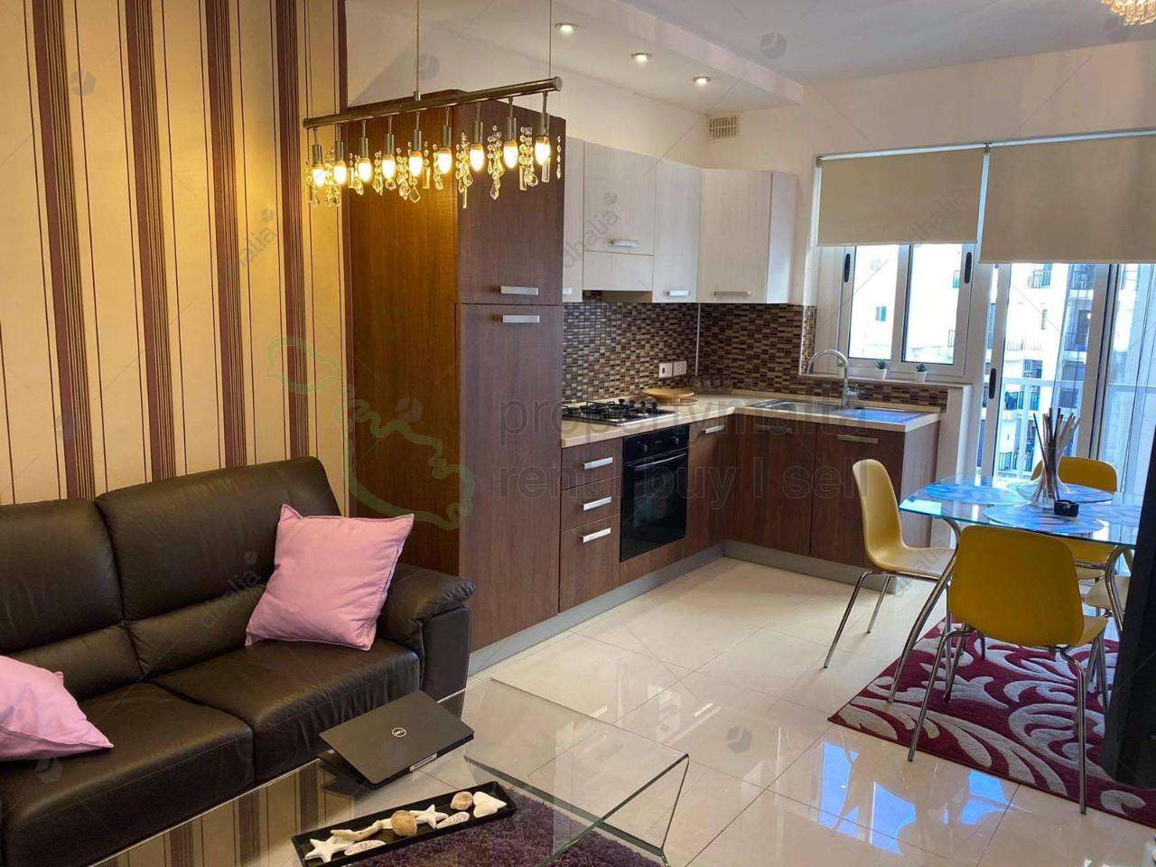 A fully furnished two-bedroom apartment, strategically situated close to all essential daily facilities. in Bugibba now available for rent. The layout comprises an open-plan kitchen, living and dining area leading onto the main bedroom, the main bathroom, a secondary bedroom, and a front terrace. Contact agent for more details.