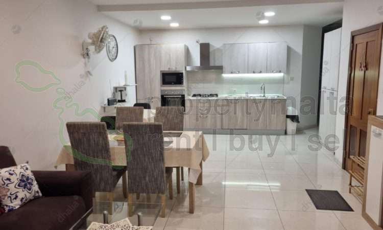 A spacious three-bedroom apartment situated in a quiet residential area of Fgura. Upon entrance, one is welcomed by a large open-plan kitchen, living, and dining area, followed by three bedrooms and two bathrooms, with access to a backyard. Contact the agent to book a viewing.