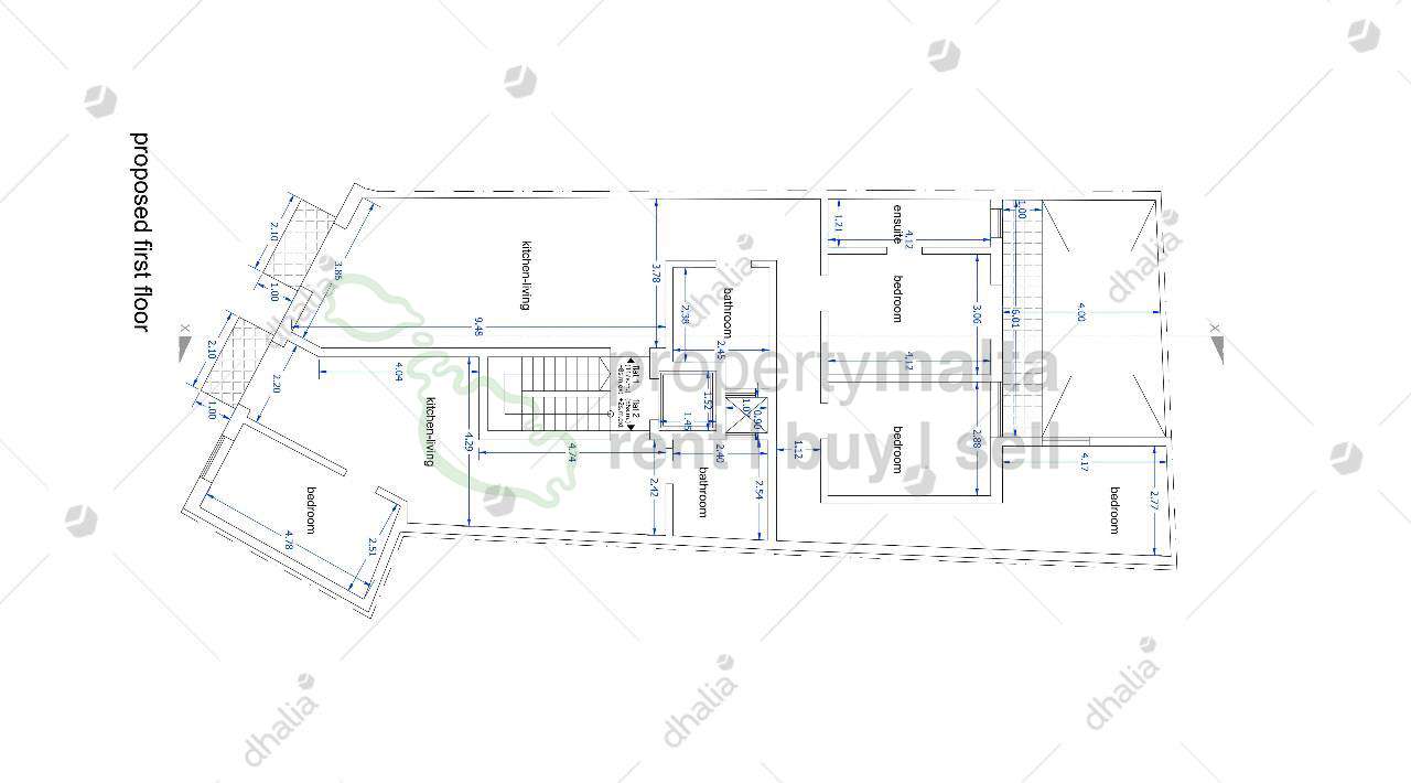 On plan, a three-bedroom first-floor apartment being sold finished, excluding bathrooms and internal doors. The property offers a well-designed layout consisting of an open plan kitchen, living and dining area, three bedrooms (main with ensuite), a main bathroom, as well as a front and back balcony. Freehold.