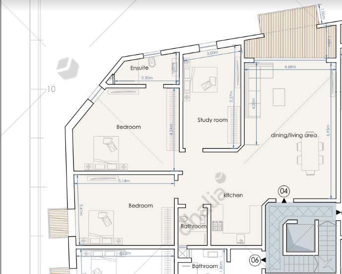Apartment on the first floor, located on the outskirts of Ghajnsielem. This apartment features an open-plan kitchen/dining/living room, two bedrooms (one with an ensuite facility), a study room and a main bathroom. Complementing this property are a spacious terrace and a front balcony. The property is being sold in shell form with highly finished common parts at 8,500 euro. Optional garages are also available for additional costs.