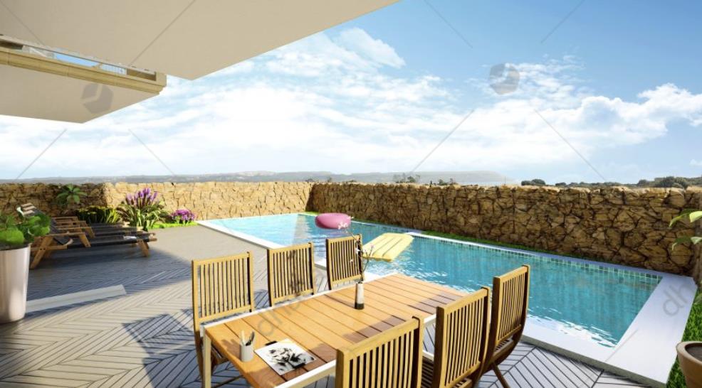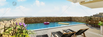 New on the market is this new development in Qala consisting of only ten units with communal pool while enjoying breathtaking amazing views. This spacious ground floor apartment is truly an excellent, future proof investment for the discerning property owner. This property consists of a well sized kitchen/dining/living room combined, two bedrooms, two bathrooms, a private pool and back terrace. Finished to very high standards including air-conditioning, false ceilings, fire alarm system, sound insulation and much more. This block will also benefits from the developer`s signature zero CO2 concepts to make it as water and energy-efficient as possible, with each property having its own PV system. Each garage comes with an Electric Vehicle charging point and remote-controlled door and access as standard.