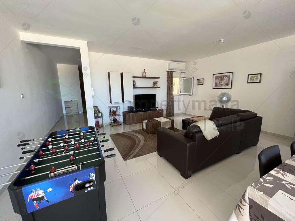 A fully furnished, second-floor apartment situated in a prestigious block, enjoying magnificent sea views from its back terrace. Accommodation comprises three bedrooms, one of which has an ensuite shower, main bathroom, washroom/storage room and combined open-plan kitchen/dining/living area leading onto a good sized terrace. Property is serviced with a lift and is within walking distance of Nadur square and all amenities. Must be seen to be fully appreciated.