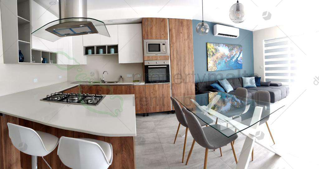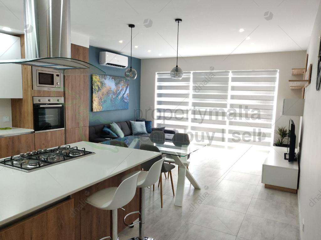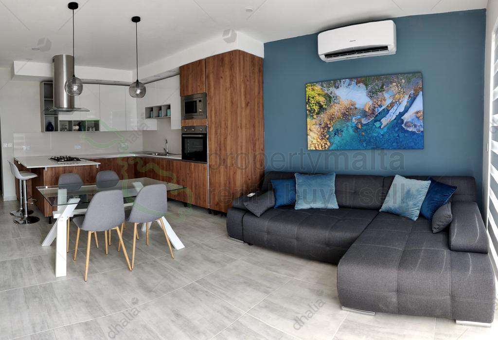 Luxury-finished apartment situated on the cliff edge of Xaghra. The apartment consists of a combined kitchen/living/dining room leading all the way to a spacious terrace having amazing country views, and distant sea views. The apartment has two bedrooms, both having an ensuite, and the main bathroom. The apartment is fully air-conditioned and is served with a lift. Not pet-friendly.