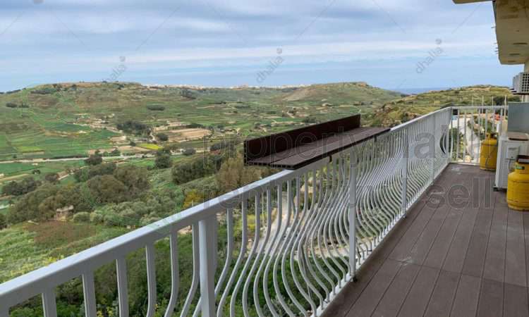 Newly finished first-floor apartment located on the outskirts of Xaghra. Property consists of a combined kitchen/living/dining having a large balcony enjoying amazing views, two bedrooms one of which is with an ensuite and a main bathroom. Property is fully air-conditioned and served with a lift.