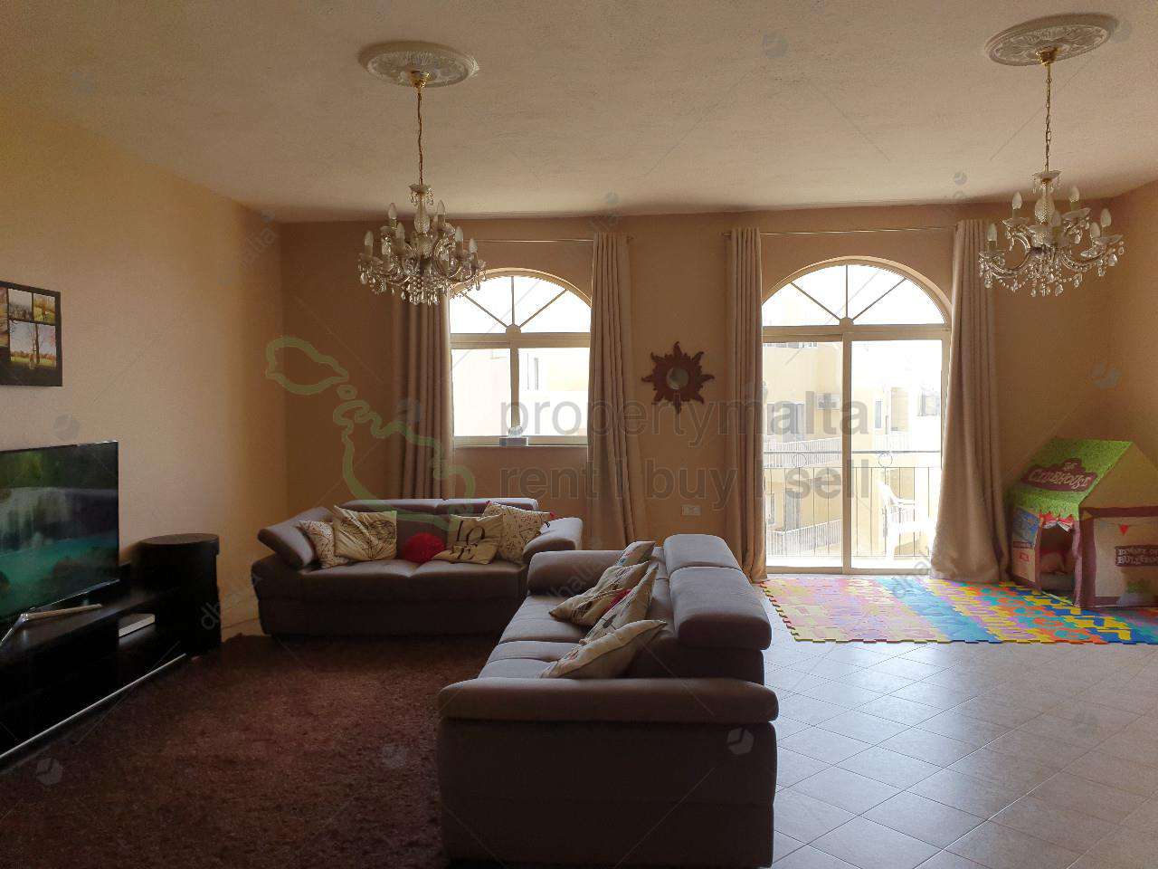 Upon entrance one finds a large sitting/dining/kitchen area and a front balcony, three double bedrooms, main with ensuite, a guest bathroom and another back balcony.