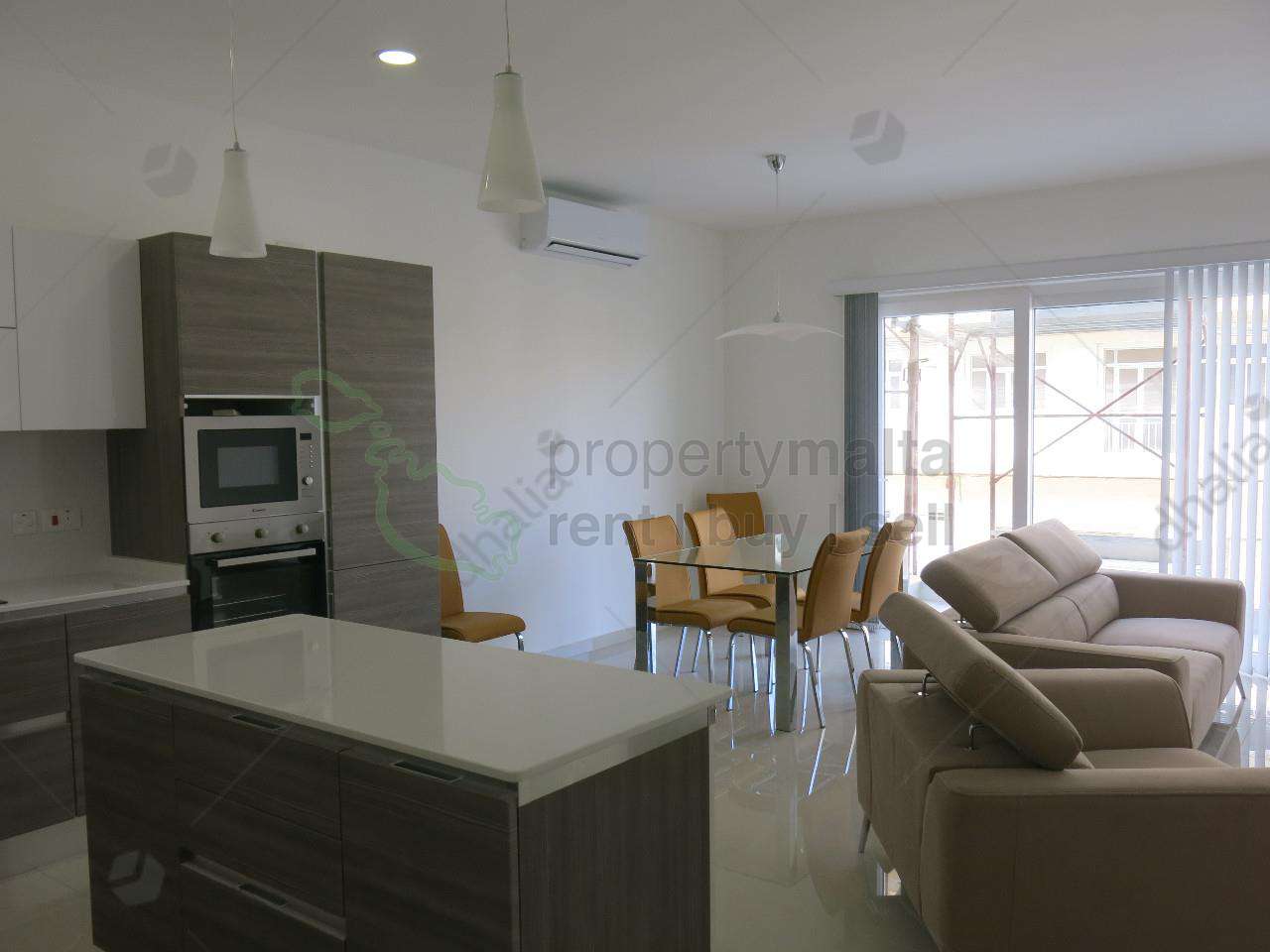 Luxuriously finished and furnished two bedroom apartment ideally located in Gzira close to all amenities. Layout is in the form of an open plan kitchen/living/dining area leading to a front balcony, two double bedrooms each with a shower ensuite and a guest toilet. Fully equipped.