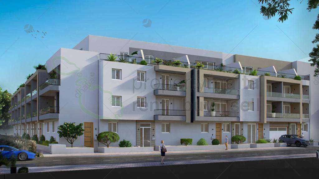 New on the market in the beautiful village of Lija is this second floor apartment spread on 120 square metres (gross). Layout consists of an open plan kitchen/living/dining leading to a spacious terrace, main bedroom with en suite and a balcony, another two bedrooms and a main bathroom. Property is being sold finished including doors and bathrooms. Optional garages are available. Freehold.