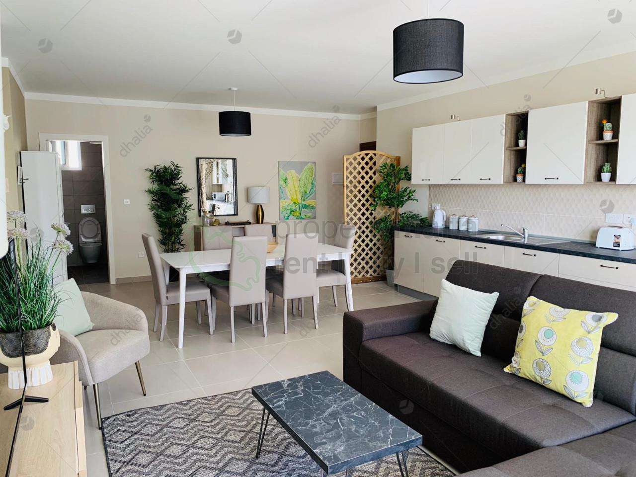 Modern two-bedroom apartment located close to all amenities and daily needs. The property consists of an open-plan kitchen/living/dining room, bathroom, two double bedrooms (main with shower ensuite) and front and back balconies. The property is served with lift, fully equipped and fully air-conditioned.
