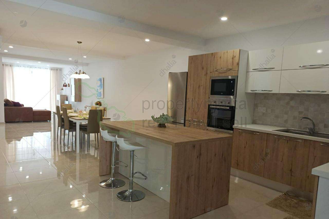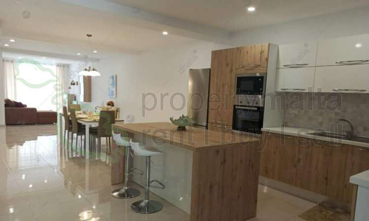 Luxuriously finished second-floor apartment set in a new block in Marsascala close to St Thomas bay. The property consists of three double bedrooms, main with shower ensuite and walk-in wardrobe, an open-plan kitchen/living/dining area, a boxroom, a laundry room, a bathroom, and front and back balconies. Offered fully equipped, fully air-conditioned with sound insulation. An interconnected two-car garage can be also rented at an extra cost.