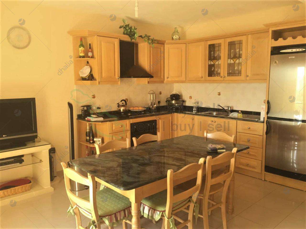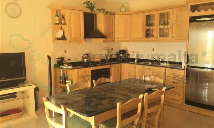 A three-bedroom apartment located close to all amenities, in Marsascala. The layout comprises an open-plan kitchen/living and dining area, leading onto a front balcony, the main bathroom, one double bedroom and two single bedrooms.