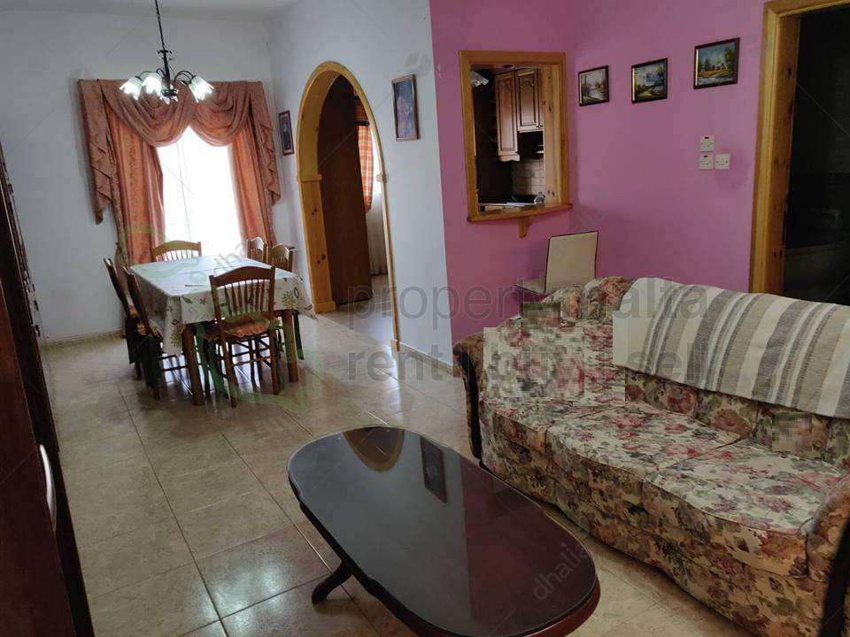 Fully furnished, three-bedroom apartment located in Marsascala close to all amenities. The property consists of a sitting/dining area, kitchen, three large bedrooms, main bathroom, a back terrace, and a front balcony.