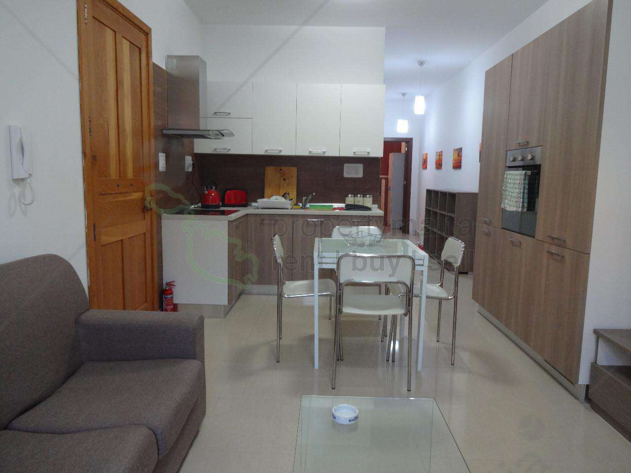 Two-bedroom modern apartment situated close to the sea. Layout consists of an open-plan kitchen/living/dining room with front balcony, small corridor leading to the main bathroom, main bedroom with an extra toilet and another spare bedroom with back balcony. Property is being offered fully equipped and served with lift.