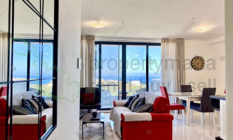 A modern, bright, and spacious enjoying beautiful distant sea views and spacious two-bedroom apartment in Mellieha. The apartment consists of an open-plan living/dining area, a kitchen (equipped with a dishwasher), two double bedrooms, an ensuite, a family bathroom, a box room, a front balcony, and another balcony at the back leading off from the two-bedrooms. Complementing this property is a one-car lock-up garage.