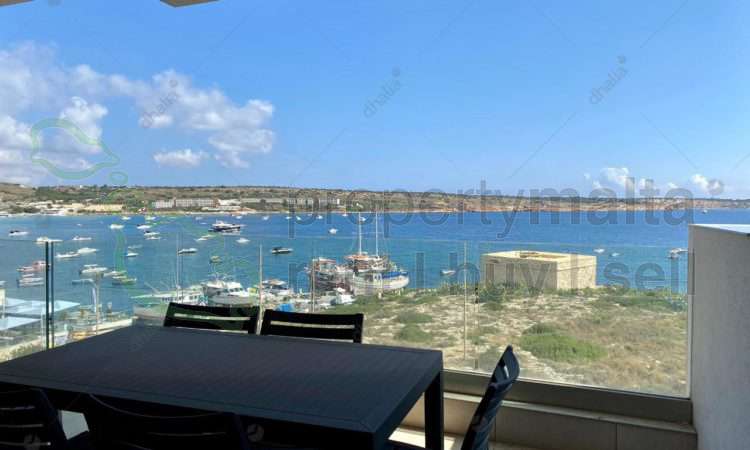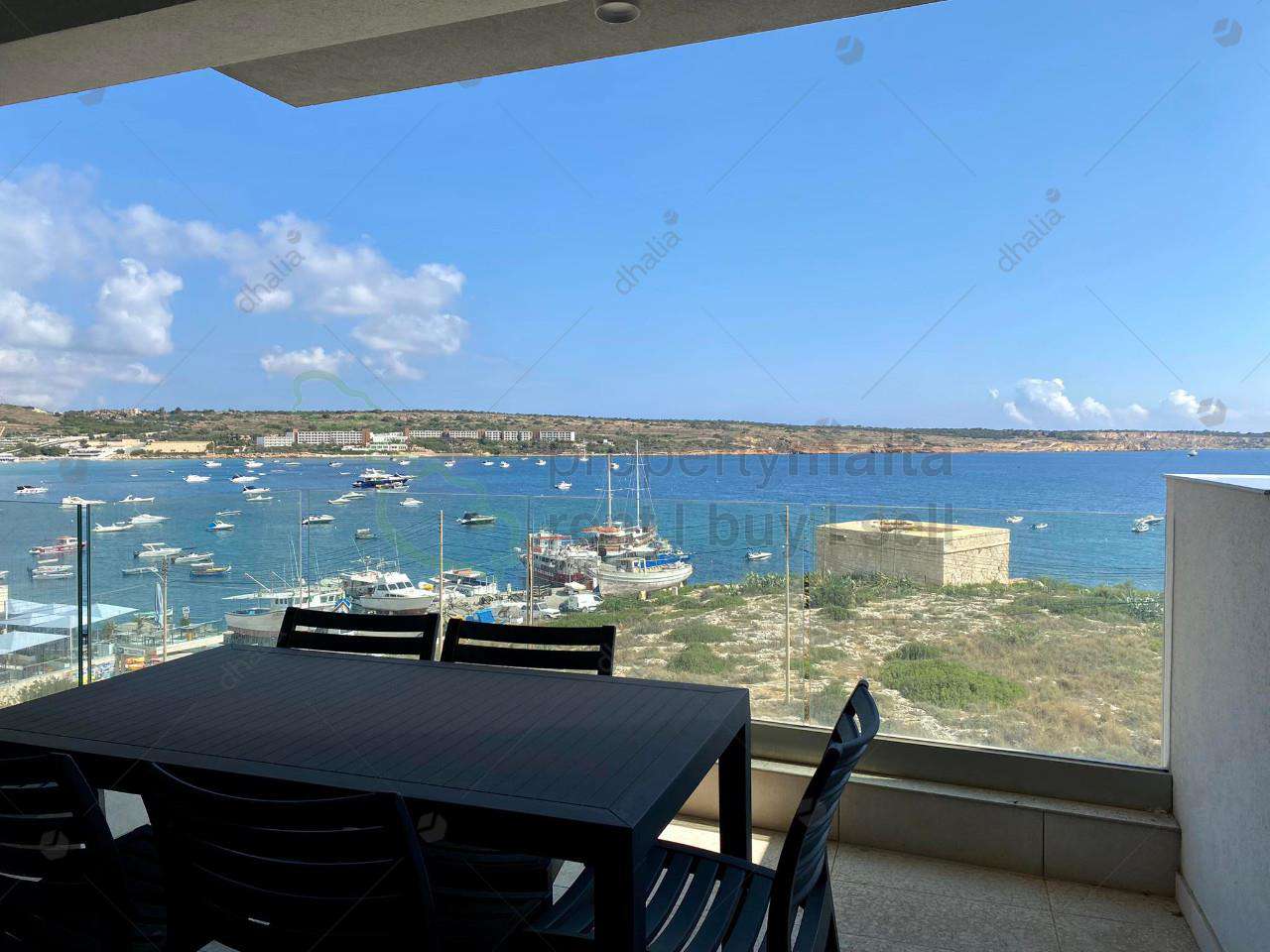 Luxurious, seafront three-bedroom, fully airconditioned apartment situated in Ghadira Bay, Mellieha. The property consists of an open-plan kitchen (equipped with a dishwasher) dining/living area leading to a balcony enjoying spectacular seaviews, three bedrooms (two with ensuite) family bathroom and two back balconies. Optional car spaces are available.