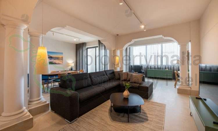 Luxuriously finished three-bedroom apartment in Mellieha, enjoying unobstructed sea views. The property comprises an open-plan kitchen/living/dining area, three double bedrooms, main with private bathroom, guest bathroom, library room and a front balcony. Fully equipped and air-conditioned. One Car lock up garage is included.