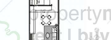 A one-bedroom studio apartment ideal as a rental investment. The layout comprises open plan kitchen/living/dining, a bathroom, a bedroom, and a balcony. Optional car spaces are also available.