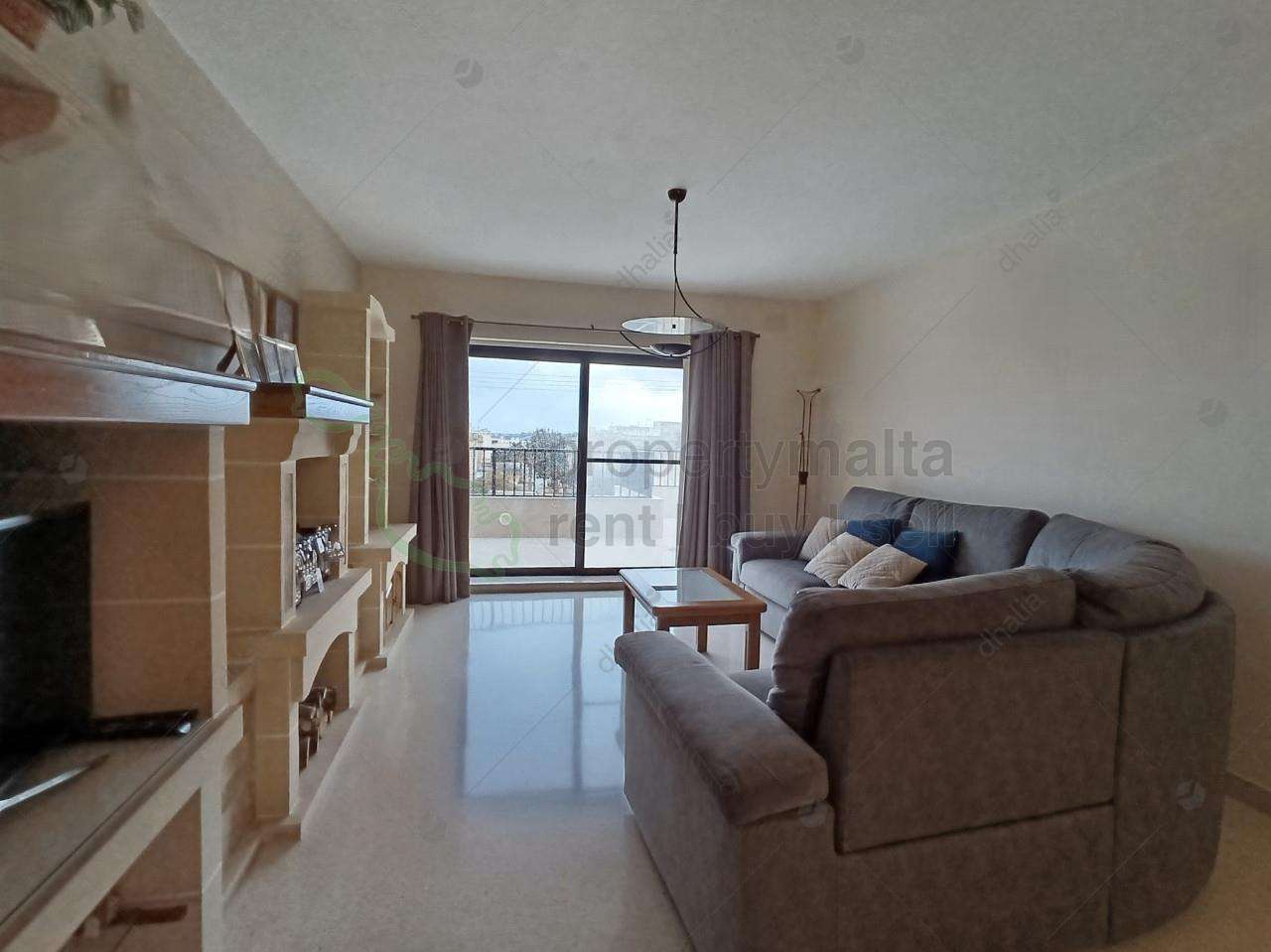 A bright and spacious three-bedroom apartment with an underlying interconnected two-car garage included in the price. The property is being sold freehold and is located in a tranquil area of Mtarfa. A wide terrace surrounds the whole frontage of the property, enjoying views of the town and countryside. Upon entrance, one finds a comfortable kitchen/living/dining area, a main bathroom, a large main bedroom, two sizeable bedrooms, one with storage and ensuite. One also can enjoy the use of roof.