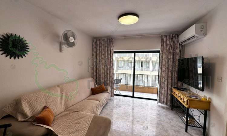 A three-double bedroom apartment located in Qawra, fourth-floor. The property has a kitchen/living/dining area, a front terrace, three double bedrooms, one bathroom, and a boxroom. The property is fully equipped including airconditioning and fans.