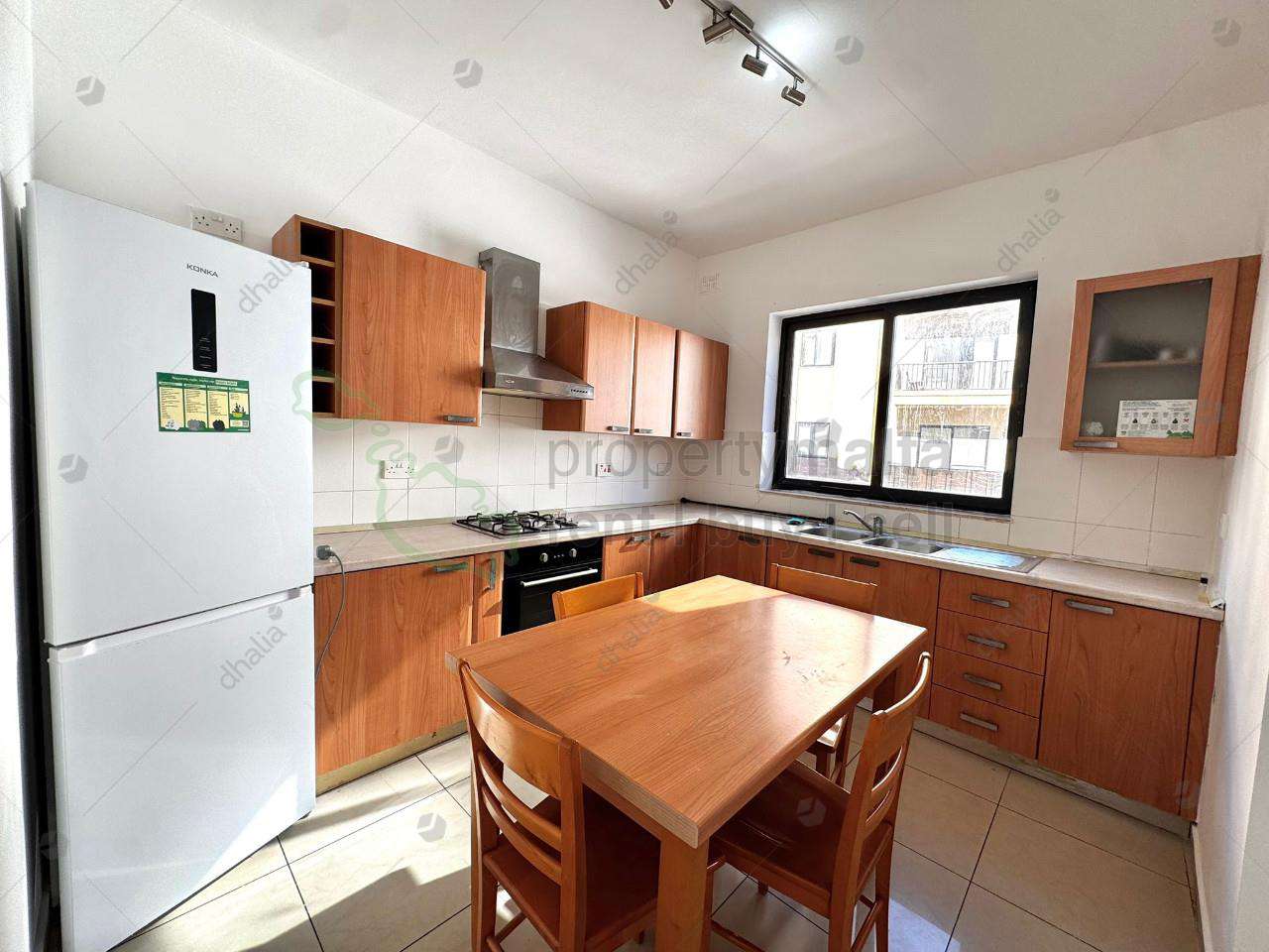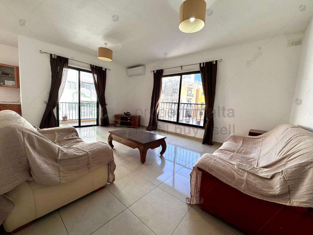 Bright and well-planned three double bedroom apartment for sale in Qawra, featuring a square layout and abundant natural light throughout as all bedrooms and open-plan windows open to the exterior (all windows face outside except for the bathrooms). Located on the second floor and being sold fully furnished, the property includes two bathrooms and is ideal both as a comfortable residence or as a solid rental investment close to amenities, transport, and the seafront.