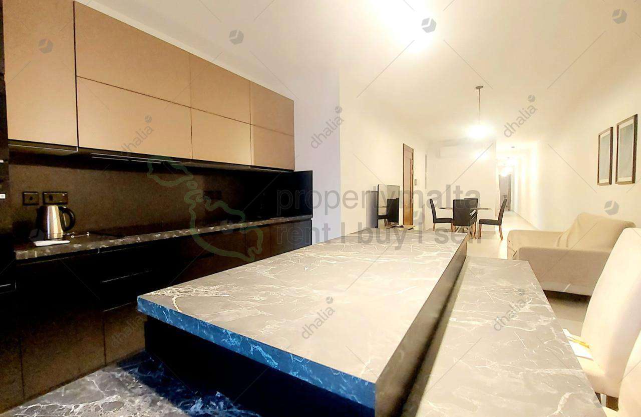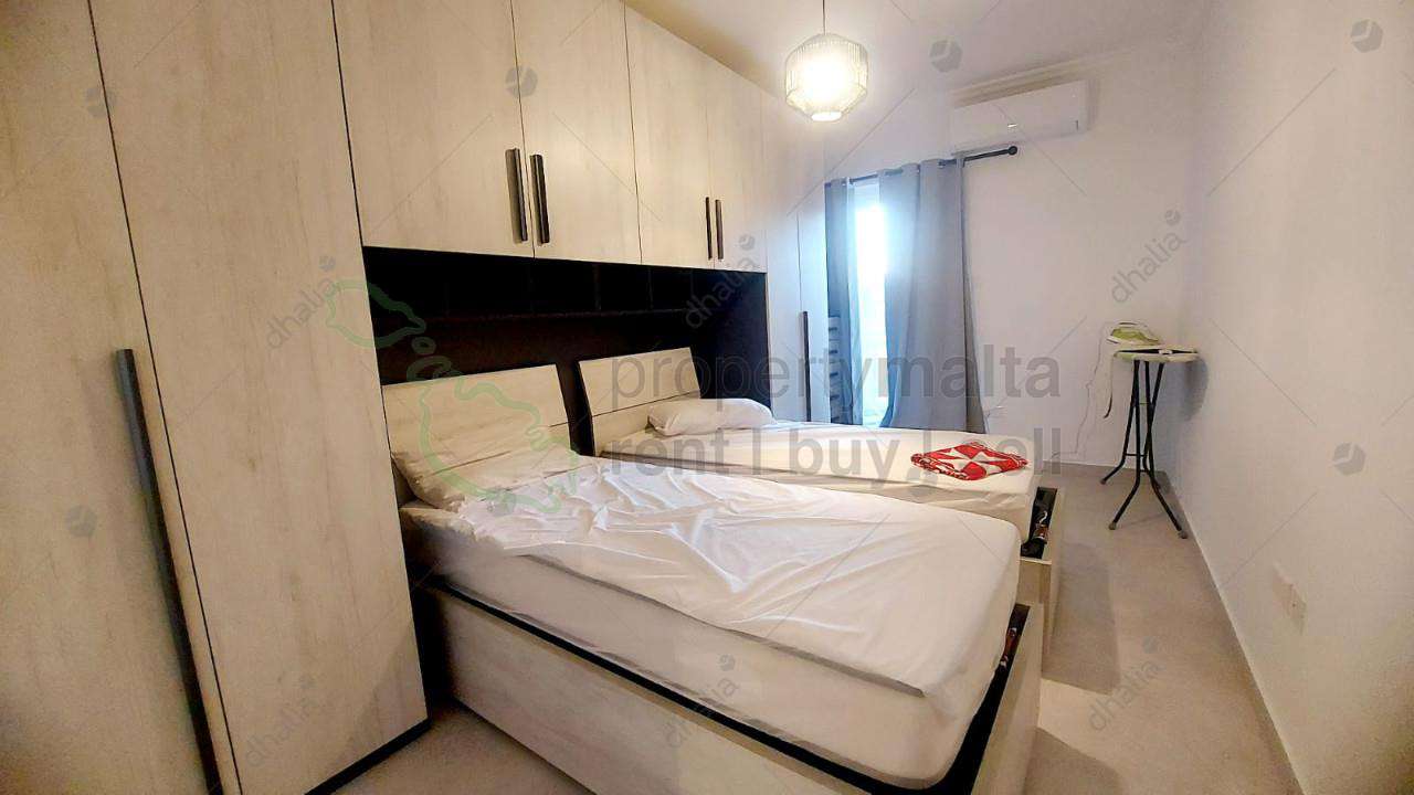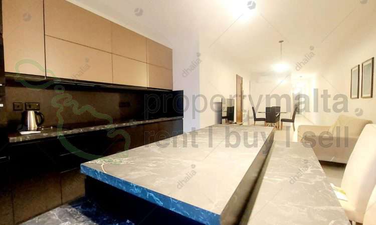 A three-bedroom apartment in the heart of Qawra is close to the primary school. The layout consists of an open-plan kitchen/dining/living area, a main bedroom with an ensuite, a main bathroom, and a front/back balcony.