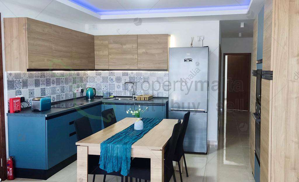 A modern two-bedroom, fully equipped and air-conditioned apartment, situated in Qawra. The property consists of a main bedroom with a small balcony, a spare bedroom with a large terrace, and an open-plan living area, enjoying distant sea views. Must see.