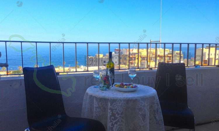 Situated in Qawra is this lovely three bedroom apartment with sea views. The layout comprises an open-plan kitchen/living/dining room with a front balcony/terrace and a back balcony. It also has three bedrooms (main bedroom with ensuite) and a guest toilet. Property comes fully air-conditioned as well.
