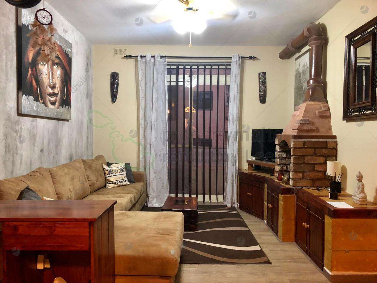 A very nicely furnished two-bedroom apartment situated in Qawra. The property consists of an open plan kitchen/living/dining area with a working gas fireplace, two spacious double bedrooms (master with ensuite), and access to the balcony, and main bathroom. This apartment is perfect for a couple or a small family.